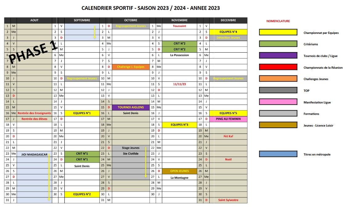 Calendrier Général saison 2025/2026 - Phase 1 (2025)